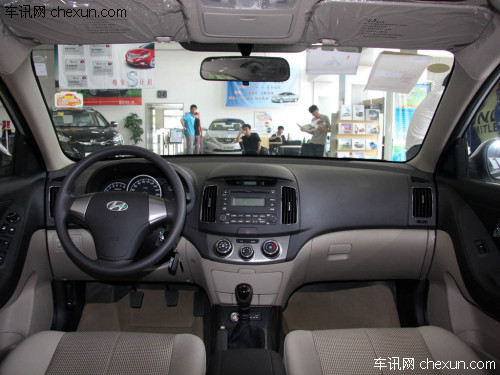 2011款悦动的内饰仍然延续了现款上深下浅的居家风格,中控台也基本保持了原有的样式,唯一的改动在中控面板顶端,边沿部分向外凸出的部分更多,让车主在光线较强时仍能看清楚时钟显示。多媒体方面,2011款悦动采用的是支持MP3/WMA格式的单碟CD机头和6扬声器音响系统,还配备有外接音源接口,位于中控面板下方。多媒体控制区域下方是手动空调控制面板,三个硕大的控制旋钮被银色饰条所包围。