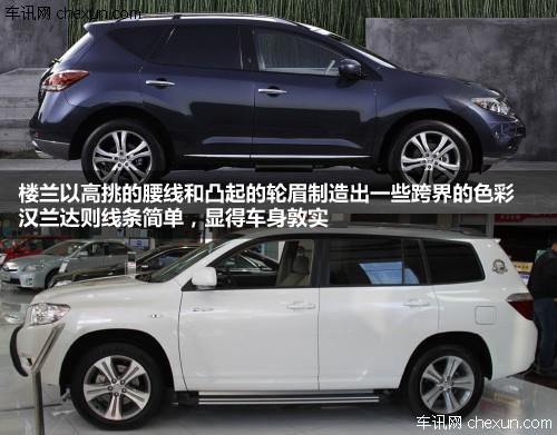 外观方面,楼兰融入了很多时尚前卫的设计元素,造型前卫,车身线条圆润又不乏张力,多辐镀铬的进气格栅与造型同样复杂的前大灯融合,显得个性另类。而汉兰达的进气格栅为直线式,大灯造型中规中矩,稍显死板。