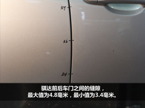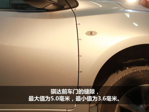 衡量汽车制造工艺水平的高低,方法之一是验证车身接缝的均匀度。依次测量接缝,取最大值与最小值,计算出多点平均值,误差越小,说明汽车制造工艺水平越高。为此,我们测量了骐达与高尔夫A、B、C柱的门缝宽度,结果如下。