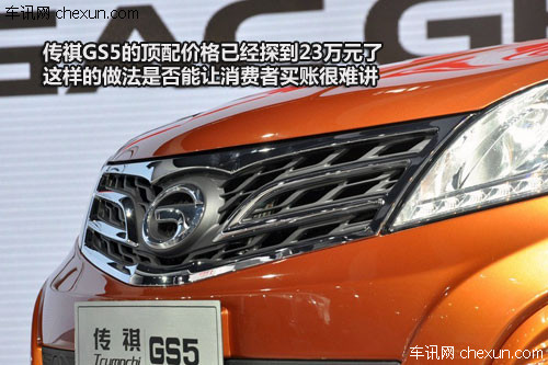从广汽对传祺GS5的宣传上看,是想让这款新车与合资的SUV看齐。而目前的实际情况是,至少价格上已经先看齐了,传祺GS5的顶配价格已经探到23万元了。但是这样的做法是否能让消费者买账就很难讲了。