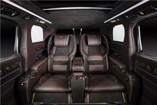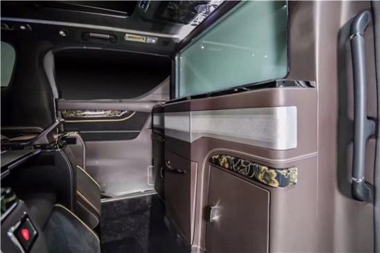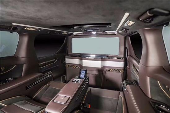 高级真皮包裹的内饰配上庄重的色彩,是整车更加彰显层次,全隔断式封闭处理,43寸液晶LED可一键升降,在旅途中可以观看自己喜欢的电视剧、大片等等,不会在让你感觉到旅途的无味。电视机下方,是隐藏的酒柜,可以摆上三两瓶自己喜爱的红酒,位于豪华座舱的两人可以小酌一下,不论是为家人的和谐气氛,亦是两位大佬生意浅谈成功的干杯,这辆车全都能满足你。