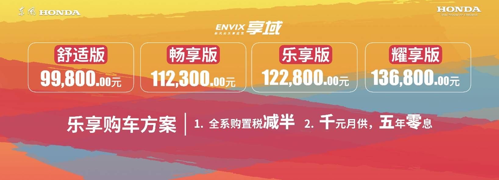 4月10日,东风Honda享域上市发布会在武汉、佛山、宁波、沈阳、重庆五城同步举行。“新风尚乐享座驾”享域乐活上市,市场指导价9.98 万元—13.68万元。