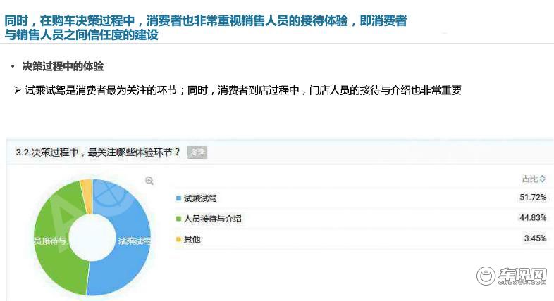 在购买的过程中,销售顾问是一个重要角色,从入门的接待到车型专业讲解再到后续客情维护,其实每一个环节上都有可能影响最终的销售结果。如果消费者与销售人员之间达成信任,就会更愿意接受销售人员的意见,超过8成的人会在节点成交。相反,如果没有良好信任接下来的感觉会逐渐走弱,想要再成单就更加困难。