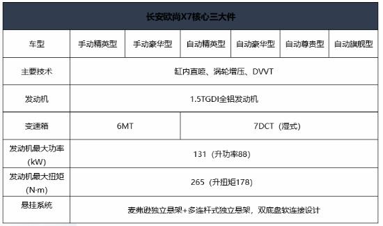 常有人说动力性与燃油经济性不可兼得,而对于大部分中国家庭消费者而言,燃油经济性是非常看重的部分。长安欧尚X7的这款发动机通过高效燃烧技术、低摩擦技术及热管理技术高效集成,实现了较低油耗。配合6速手动变速器或7速湿式双离合变速器,百公里油耗低至7.4L。在兼具燃油经济性的同时,长安欧尚X7实现了驾乘空间与动力输出的完美平衡。