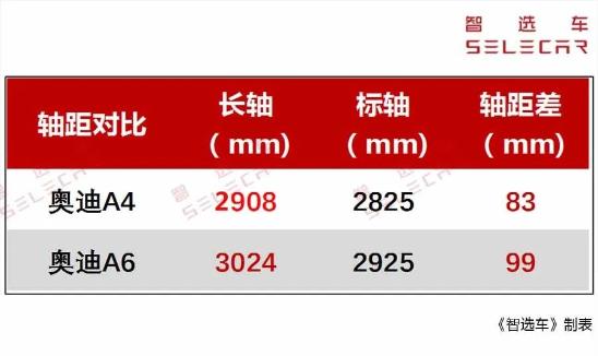 通过上表可以看出,奥迪A4L相较标轴A4轴距增加了83mm;奥迪A6L相较标轴A6轴距增加了99mm。轴距长度或轴距增加多少,自然是取决于车型定位。A6L作为中大型车,大空间(长轴)所带来的舒适性自然是它所要追求的。奥迪A4L作为中型车,市场定位的目标人群自然会更加年轻一些,在兼具空间的同时,运动性(短轴)对于它来说也必不可少。可以推断,A3L所增加的轴距不会超过83mm。