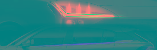 车头配备的矩阵式LED大灯,设计灵感来自于古希腊建筑—帕特农神庙立柱,三矩阵LED灯组协同L形LED灯带呈现视觉的崭新体验。