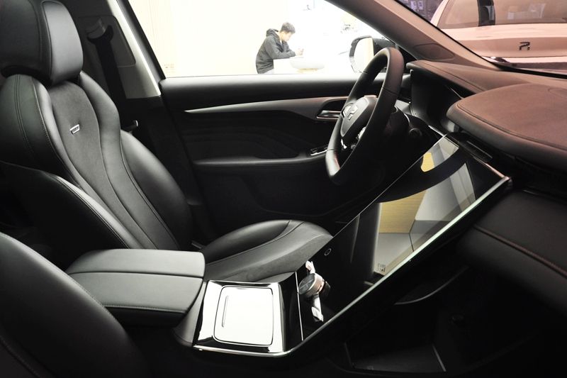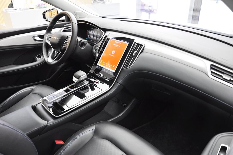 内饰使用了大面积的皮质包覆,中控台被19.4英寸的液晶屏几乎完全占据,中间平台上没有ER6那样的挡把。