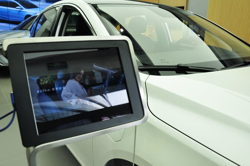 每款展车旁边,都有一块触摸屏,供您了解这款车的方方面面。