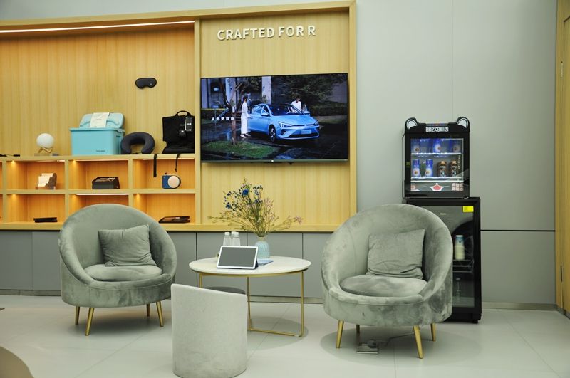 我在北京望京soho的R汽车体验中心看到,室内面积虽然不大,但色调简洁明快,令人感到很舒服。
