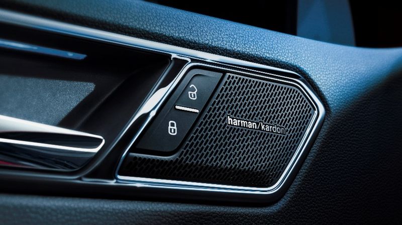 途观X搭载的10扬声器车载音响系统是上汽大众与音响行业翘楚哈曼卡顿的合作结晶,为用户带来自然、灵动、逼真的极致听觉享受。标志性的扬声器网罩格栅上扬式设计(60度倾斜)和醒目的品牌标识,体现音响系统的尊贵身份。