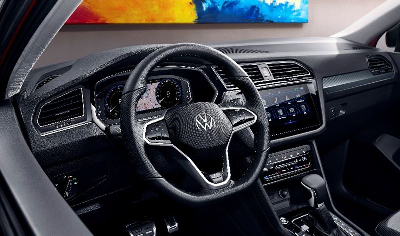 内饰方面,途观X大量采用全触控的设计,全面提升整车的档次和科技感。途观X首次采用全新R-line专属触控式真皮多功能方向盘,多功能按键区域升级为高光黑一体式触摸面板,只需轻按所需功能标识,即可实现功能选择,操作准确,便捷安全。此外,途观X用9.2英寸智能多媒体交互系统(带智能导航)取代传统中控,更简约更科技;空调面板也采用Glass Design全触控式面板设计,只需手指轻触即可完成空调温度的设置与调节。