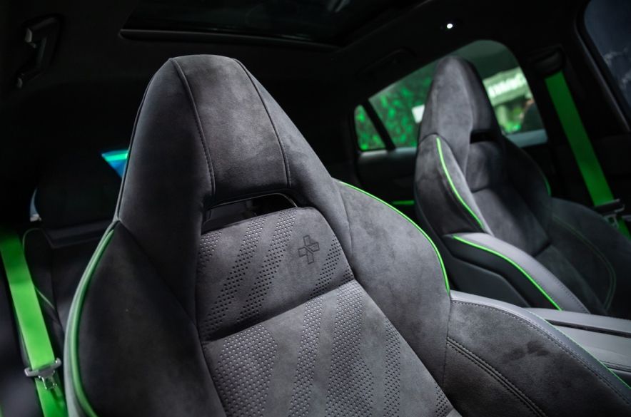 外观上,专属黑绿战衣的加持使得领克05+锋芒毕露,耀眼又神秘的探索绿与沉稳又深邃的哑光黑激情碰撞,迸发出颠覆传统感官的视觉冲击,以对立又融合的配色释放性能潮流本色,充分张扬个性与生命力,营造势不可挡的进击姿态。