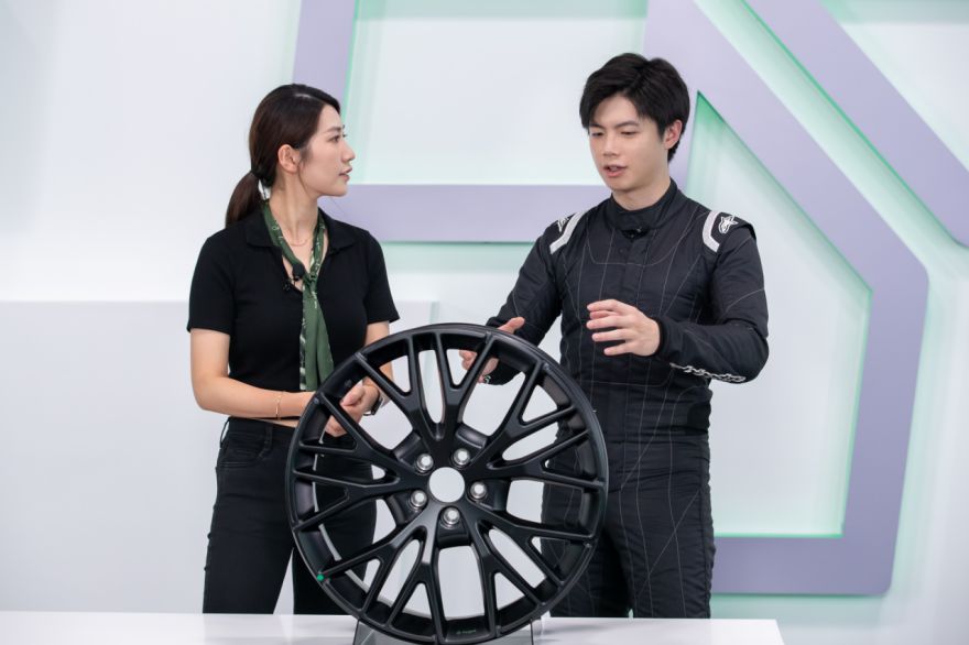 CTCC冠军车手叶弘历 (右)与主持人张秋晨(左)解析领克 05+ 性能装备