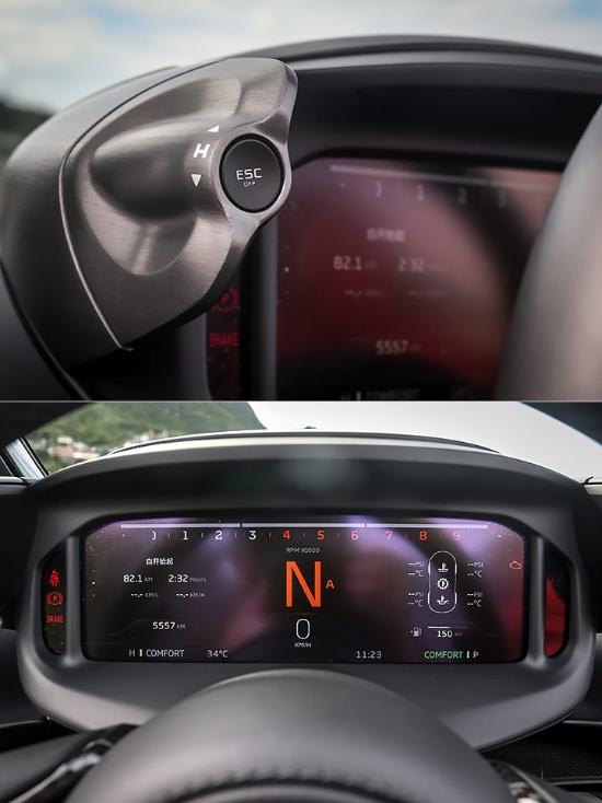 Elva 与 Elva windscreen version 搭载彩色数位仪表,并将动力模式选择旋钮及操控模式选择旋钮,分别设计在仪表外框的左/右上缘位置。