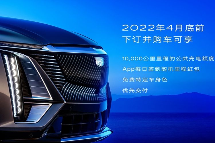 2021年11月17日,凯迪拉克纯电SUV LYRIQ开启预售。首发车型是后驱长续航豪华版,预售价格43.97万元。用户可以通过凯迪拉克IQ共创App和微信小程序支付1,190元订金进行预订。在2022年4月底前下订并购车的首批车主,还将获得10,000公里里程的公共充电额度、凯迪拉克IQ共创App内每日签到里程红包、特定车身色以及优先交付的额外权益。新车将于2022年中陆续交付。