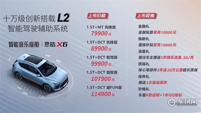 6月19日,思皓X6正式上市,共推出5款车型,官方指导价7.99-11.49万元,7月31日前下订,还可享受六重大礼。