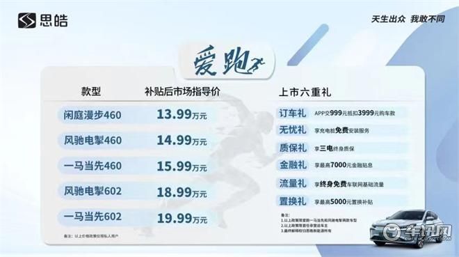 7月28日,伴随着一场真人秀户外沉浸式体验直播,思皓纯电轿跑爱跑正式上市。新车共推出5款配置,售价13.99-19.99万元。