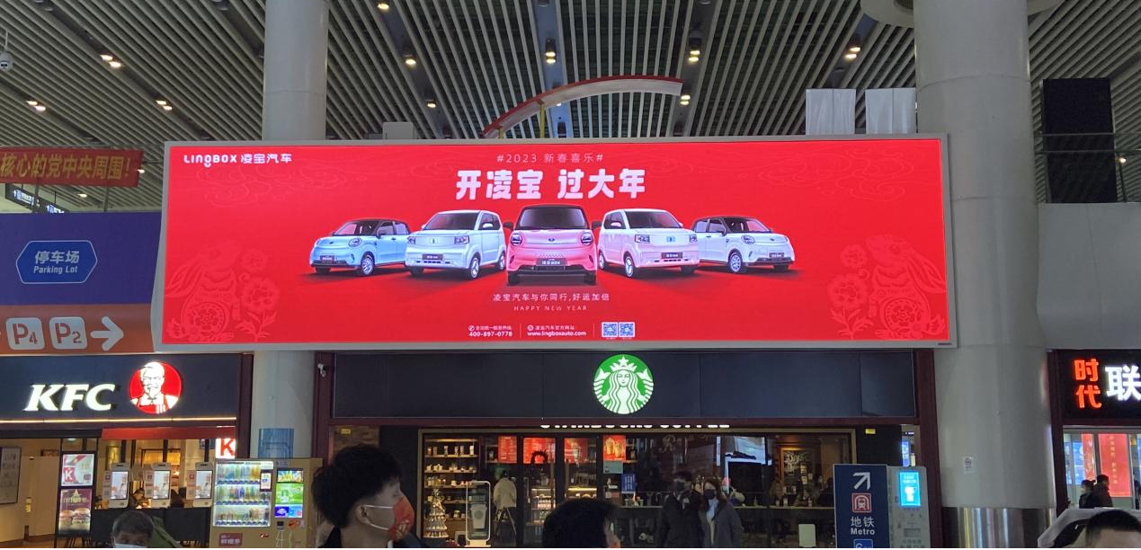 凌宝汽车在全国近百城的高铁站大屏布局视觉震撼巨幅画面。“开凌宝·过大年”或将成为2023年关键词。