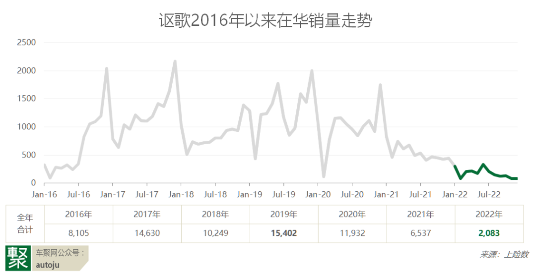 DS也曾有高光时刻,2015年总销量攀升至2.7万辆,这对于一家上市仅3年而言实属不易。不过,2016年起持续下滑,坊间“DS将退出中国市场”的传闻也不胫而走。