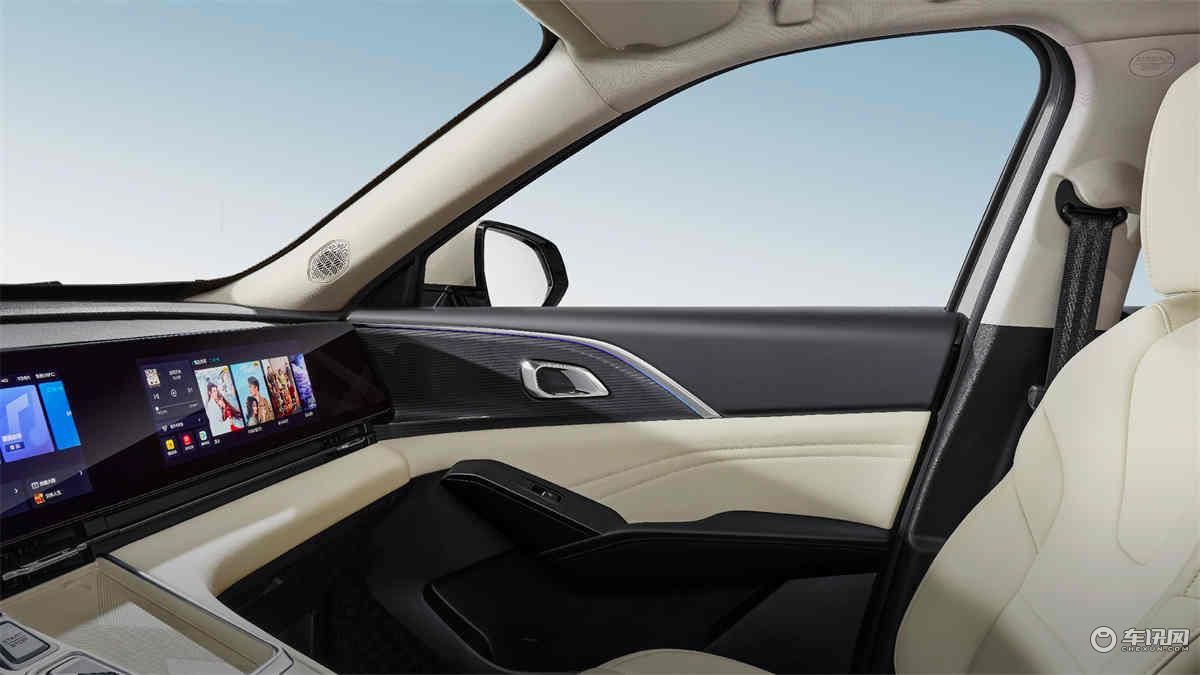 内饰中,采用的是12.3英寸全彩液晶中控屏和12.3英寸副驾娱乐屏以及12.3英寸的仪表盘组成的三联屏。氛围灯能提升浪漫的车内场景。