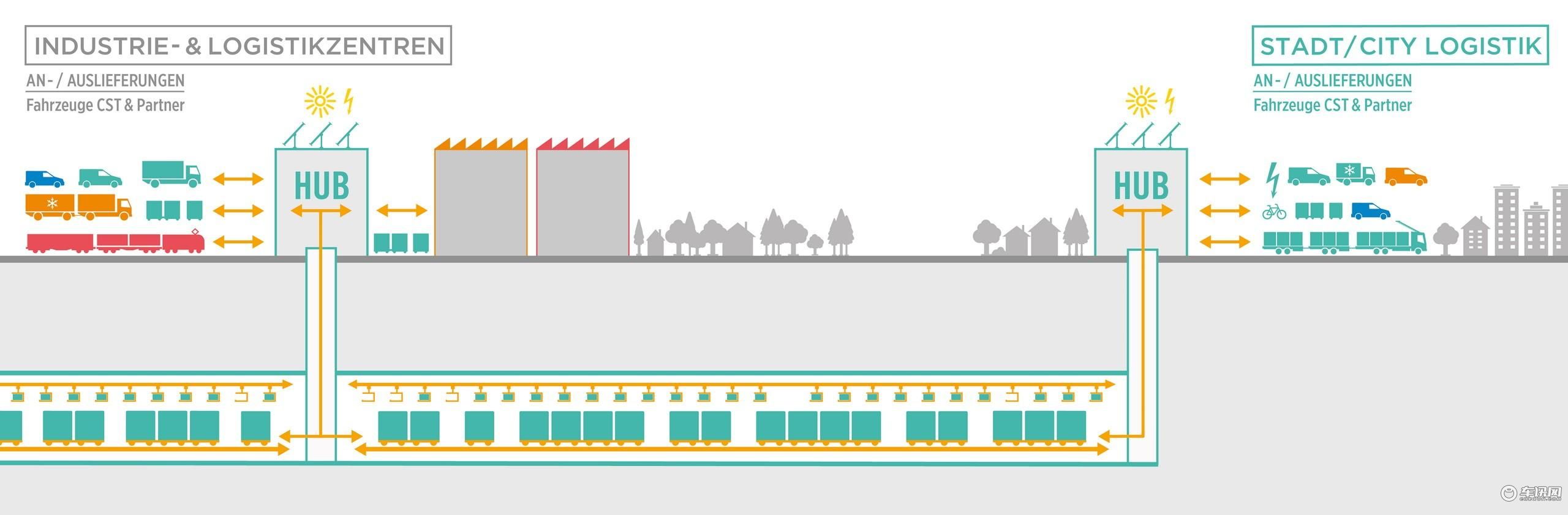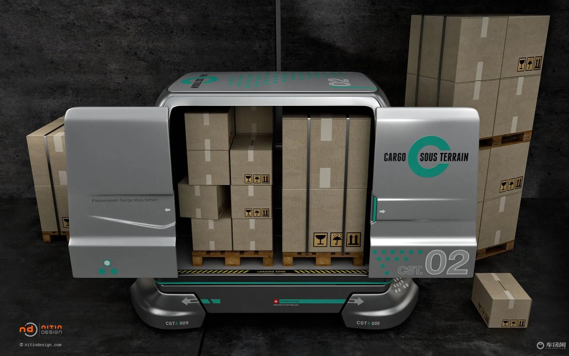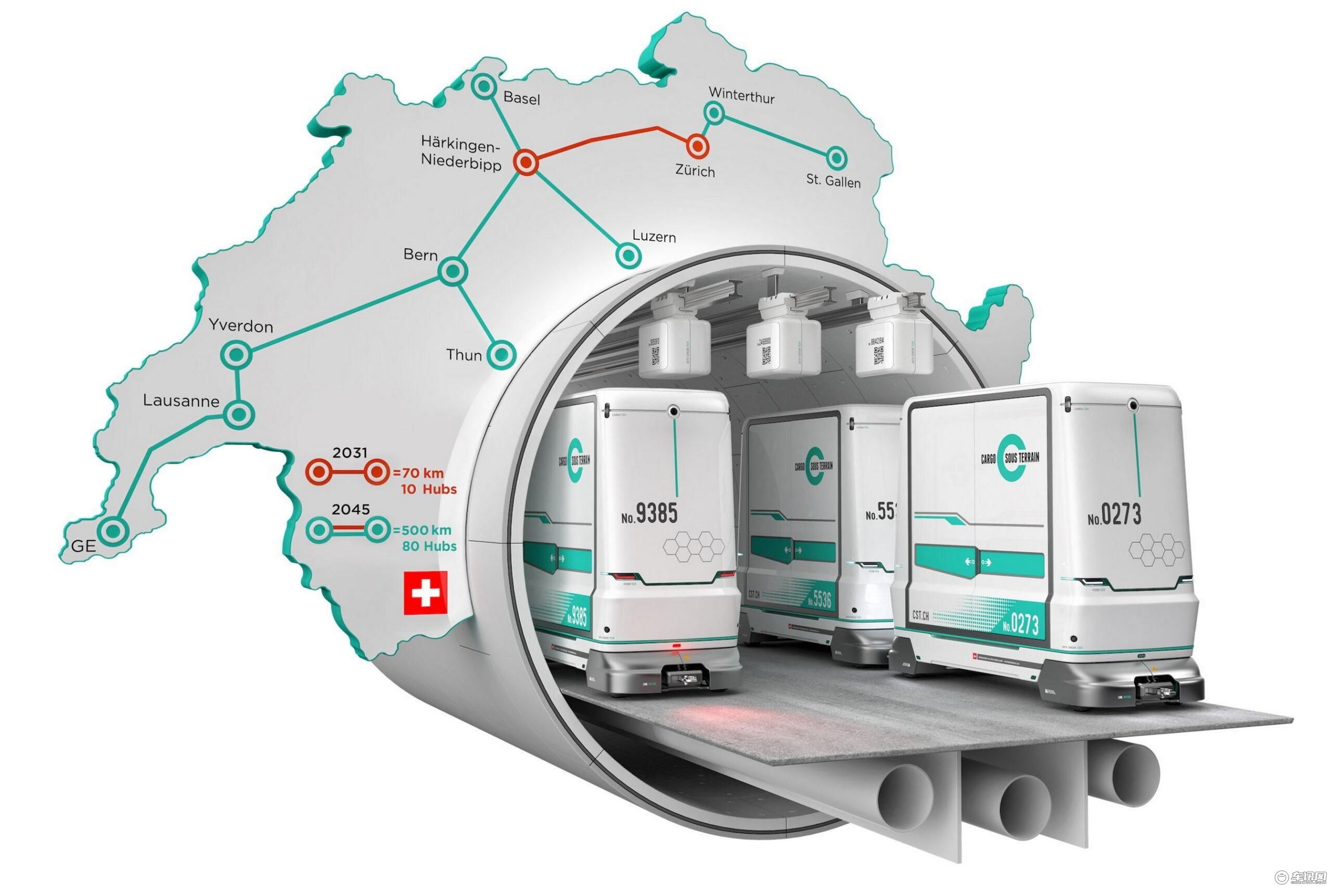 这个全新的货运系统被称作Cargo Sous Terrain(CST),简单来说它是一套建立在地下的完全自主零排放运输系统,该系统使用微型全自动车辆作为货运舱,建成后能够大幅减轻铁路和公路货物运输的负担。