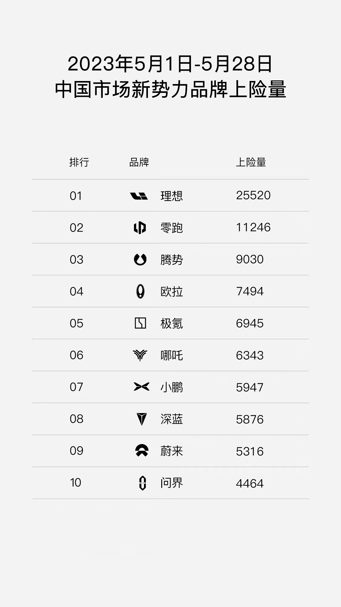 值得一提的是,虽然5月整体上险量尚未出炉,但根据市场流传的5月1日至28日中国市场新势力品牌上险量来看,理想汽车上险25520台,零跑汽车上险11246台;剩下的三天时间基本预留着1千台到3千台不等的数据叠加空间。与6月1日两家车企官方公布的交付量(理想 28277台,零跑 12058台)对比,数据浮动均在合理,真实的范围内。有些友商则是大相径庭。