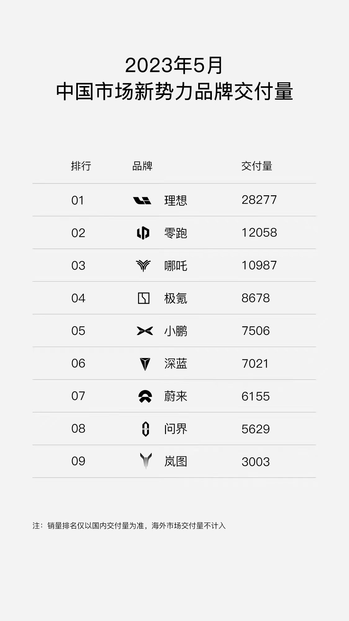 最近,造车新势力5月国内交付数据出炉,到了几家欢喜几家愁的时刻。理想不出意料位列榜首,零跑更进一步跃升至第二位,C系列交付创历史新高地破万,销量结构实现跨越式发展;而曾经第一梯队的蔚来、小鹏则持续低迷,跌到了新势力中下游的水平。