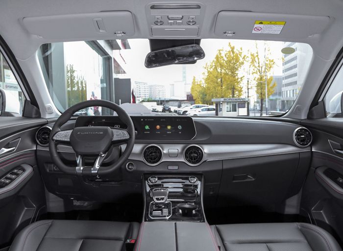 动力方面,风行T5 EVO搭载了型号为4A95TD的1.5升直列四缸涡轮增压发动机,最大功率197马力,峰值扭矩285牛·米,动力经由一具7速湿式双离合变速箱输送至前轮。