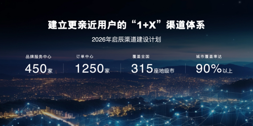 到2026年,启辰的品牌服务中心将发展至450家,订单中心发展至1250家,整体覆盖全国315座地级市,城市覆盖率达90%以上。