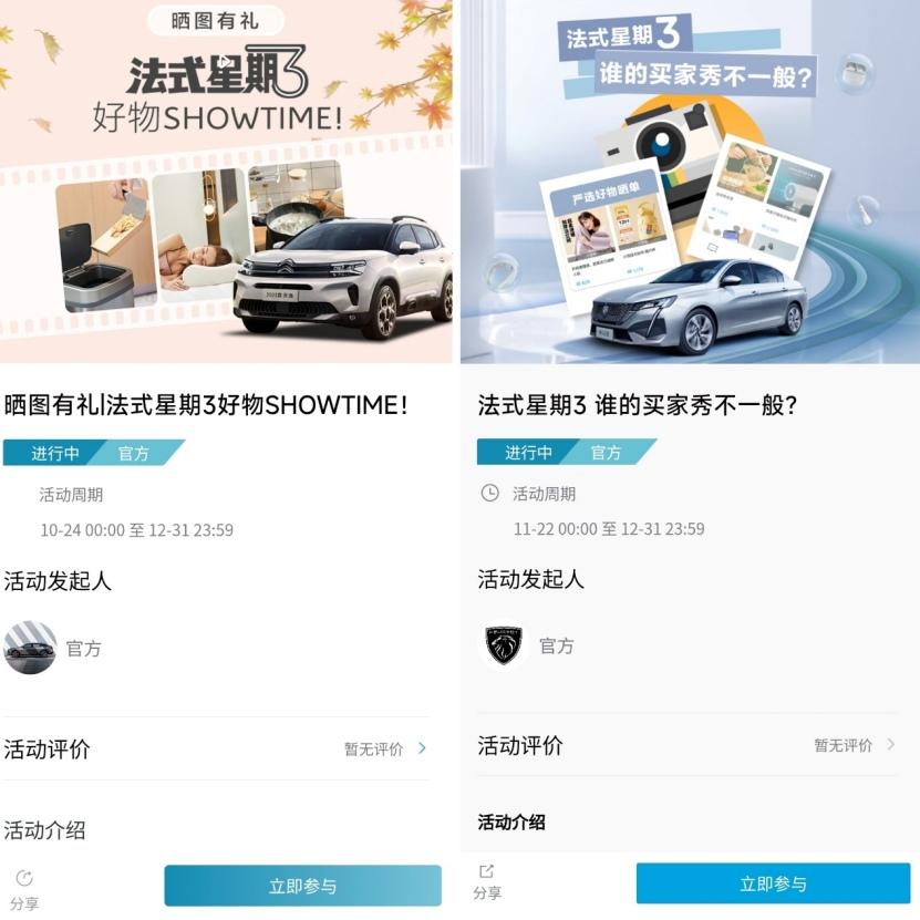 此外,12月即将来临,“法式星期三 神龙知音日”将为知音伙伴带来全新体验,以一场“冬日的第一杯热红酒”为主题的IP活动,让客户更深入的了解和感受东风雪铁龙、东风标致个性、时尚、优雅、有品位的品牌调性。敬请期待!