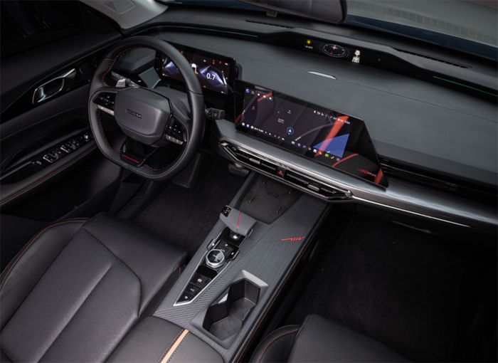 内饰方面,欧尚Z6正空调的设计也较为前卫,装备了10.3英寸的全液晶仪表盘,中控台中央内嵌了12.3英寸的多媒体触控屏,并且新车还配有AR-HUD系统,在多屏互联方面非常不错。另外,新车还内置了最新的OnStyle 5.0系统,支持EaglePilot7.0全语音代客泊车系、全场景智慧车外语音、分屏功能、人脸ID识别等科技功能。