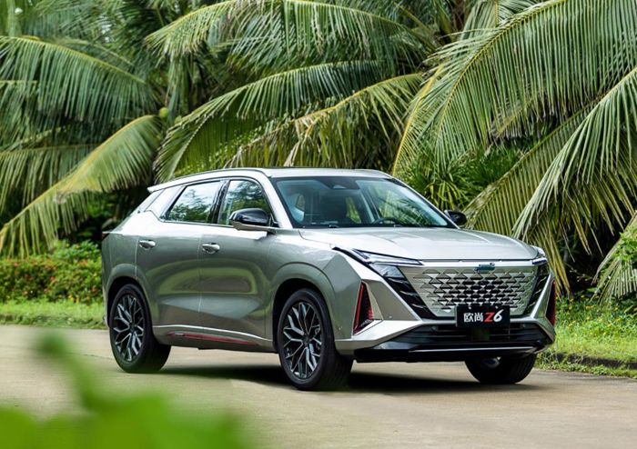 外观方面,欧尚Z6采用了大嘴式前进气格栅设计,两侧大灯组造型为狭长的样式,前包围使用了棱角分明的三角设计,整体视觉效果非常具有张力。新车车顶线条微斜向下延伸至车尾,营造出了快背式的轿跑风格;前后侧翼子板上还搭配了突出的轮眉设计,凸显出了一些宽体的视觉效果,车身尺寸方面,新车的长宽高分别是4699/1890/1680mm,轴距为2795mm。车尾部分,新车配备了一个大尺寸的车顶扰流板,尾灯造型较为犀利,熏黑的灯罩配合像云一般的尾灯组,在点亮后极具辨识度。此外,新车后包围还采用了尾部扩散器装饰以及双边共四出的排气布局,进一步展现了新车年轻运动的个性化属性。