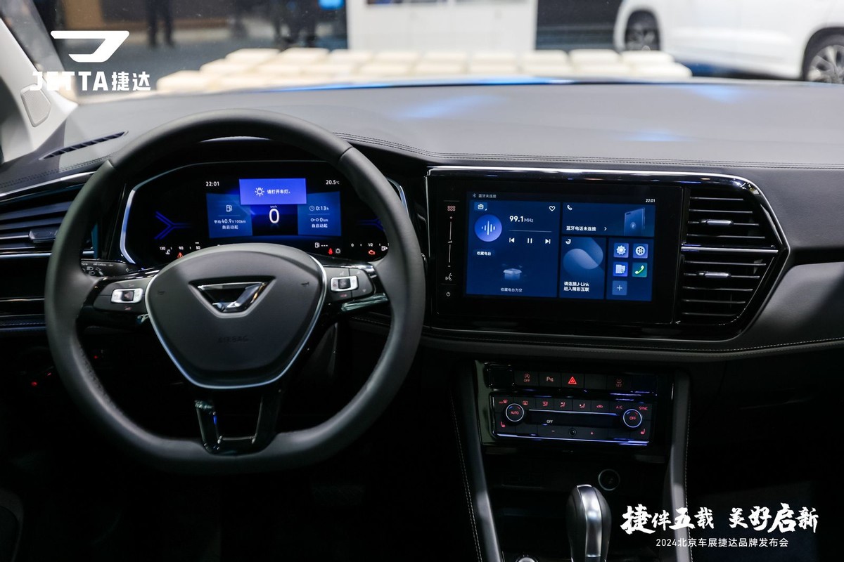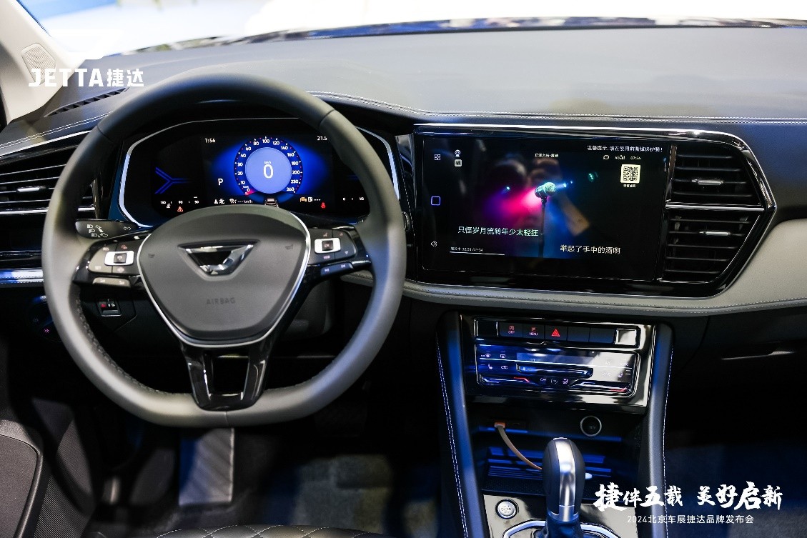 外观上,战魂铠甲进气格栅营造出犀利且具有攻击性的风格,风之翼车身同色侧裙与云之翼动感尾翼,形成从前到后贯穿的雕刻式流线,环绕车身的特征线在视觉上增加车宽,提升视觉张力,形成丰富的光影层次,配以锋芒星日间行车灯和修长的前LED大灯,使整车像雕刻铠甲般充满力量感。字符“JETTA”尾标代替传统LOGO,更具现代感和品质感。全新捷达VS5新增“闪耀蓝”车漆,给人明净通透的洁净感,同时共有跃动蓝、极地白、星河灰、锰石黑5种车身颜色可选,满足不同人群的需求。