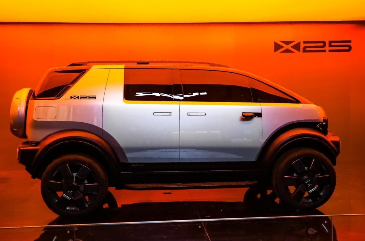 除了iCAR 03和03T外,此前在品牌之夜上完成全球首秀的V23和X25也如约亮相本次车展。定位于风格越野的V23,以其充满力量感和时尚感的外观设计,赢得现场一致好评。其越野风格的方盒子造型致敬了经典设计,四轮四角、超短前后悬及大轴距的设计带来了强烈的视觉冲击力,同时也为车内留下了宽敞的空间,提供了更为舒适的驾乘体验。
