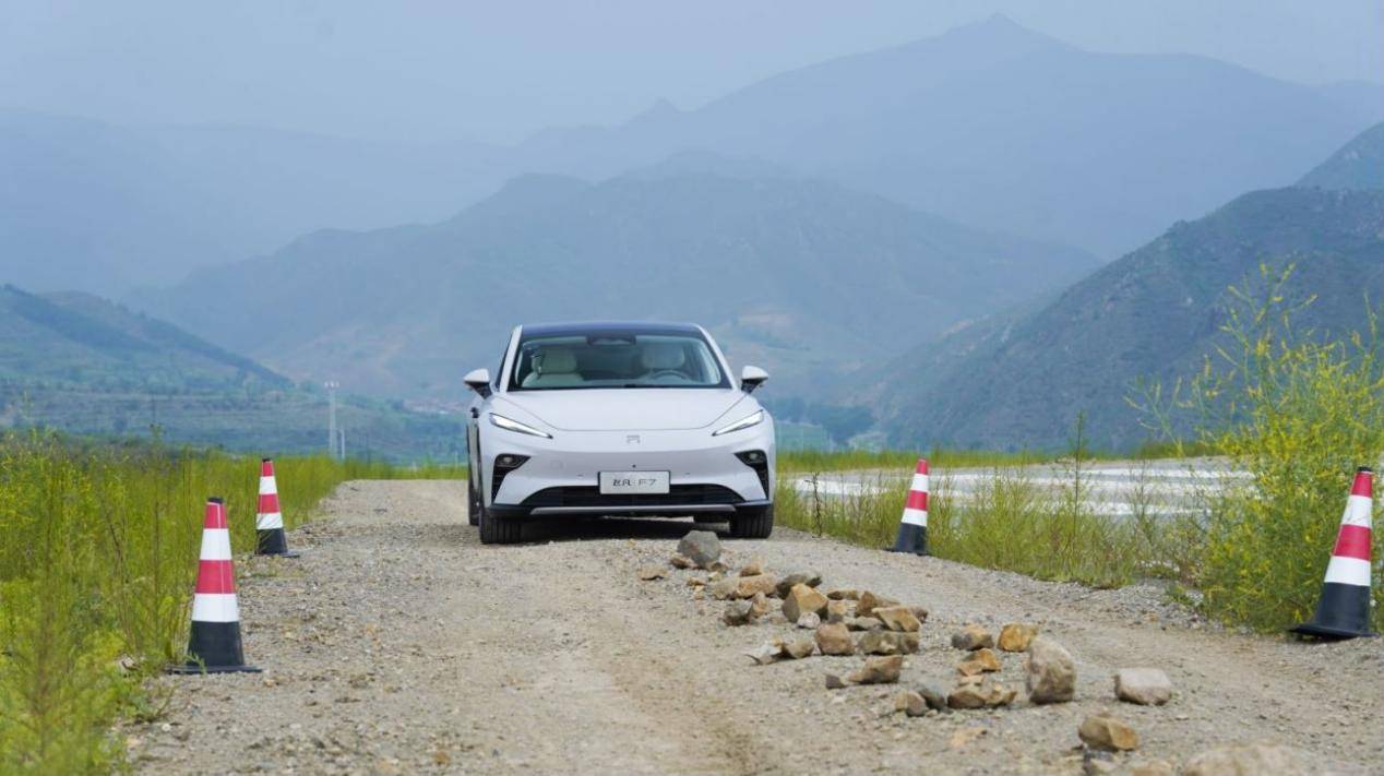 经过前两个环节的考验,第三个环节才叫真正的极致考验,组织方为这款电动轿车摆出石头阵!其目的就是测试车辆底部的电池能否承受住撞击,会不会起火漏电!组织方设置了一条长度200米/宽度5米的测试车道,其中摆放着多个不规则石块,石块高度都在13cm以上,最高能达到22cm。飞凡F7要以不低于50km/小时的速度进行冲击。
