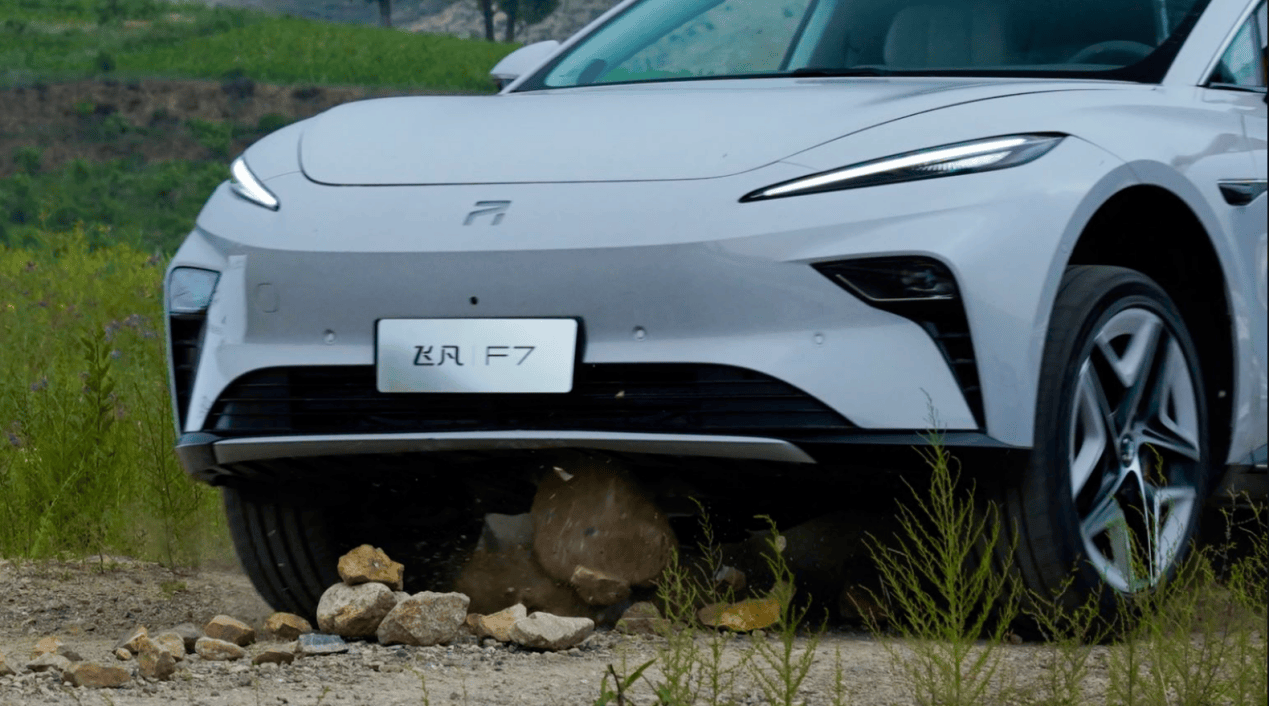 其次是车身结构的赋能,飞凡F7车身骨架上使用了“三横三纵”的传力路径设计,前副车架处的高强度的铝合金动力电池挡块以及高强度铝合金电池壳体,还有高于双侧车门门框高度的电池包设计,起到了很好的隔挡和缓冲的作用,能使底盘撞击障碍物后电池包不被挤压,全方位保护了电池系统的安全。