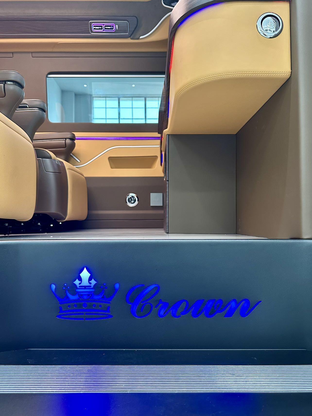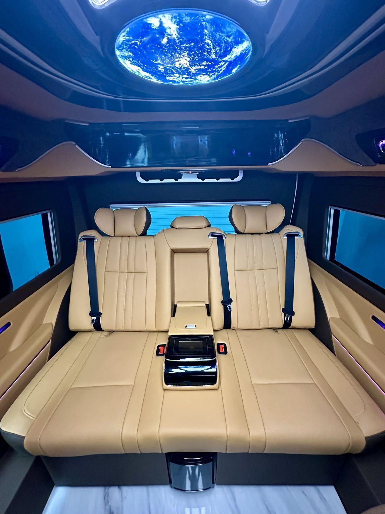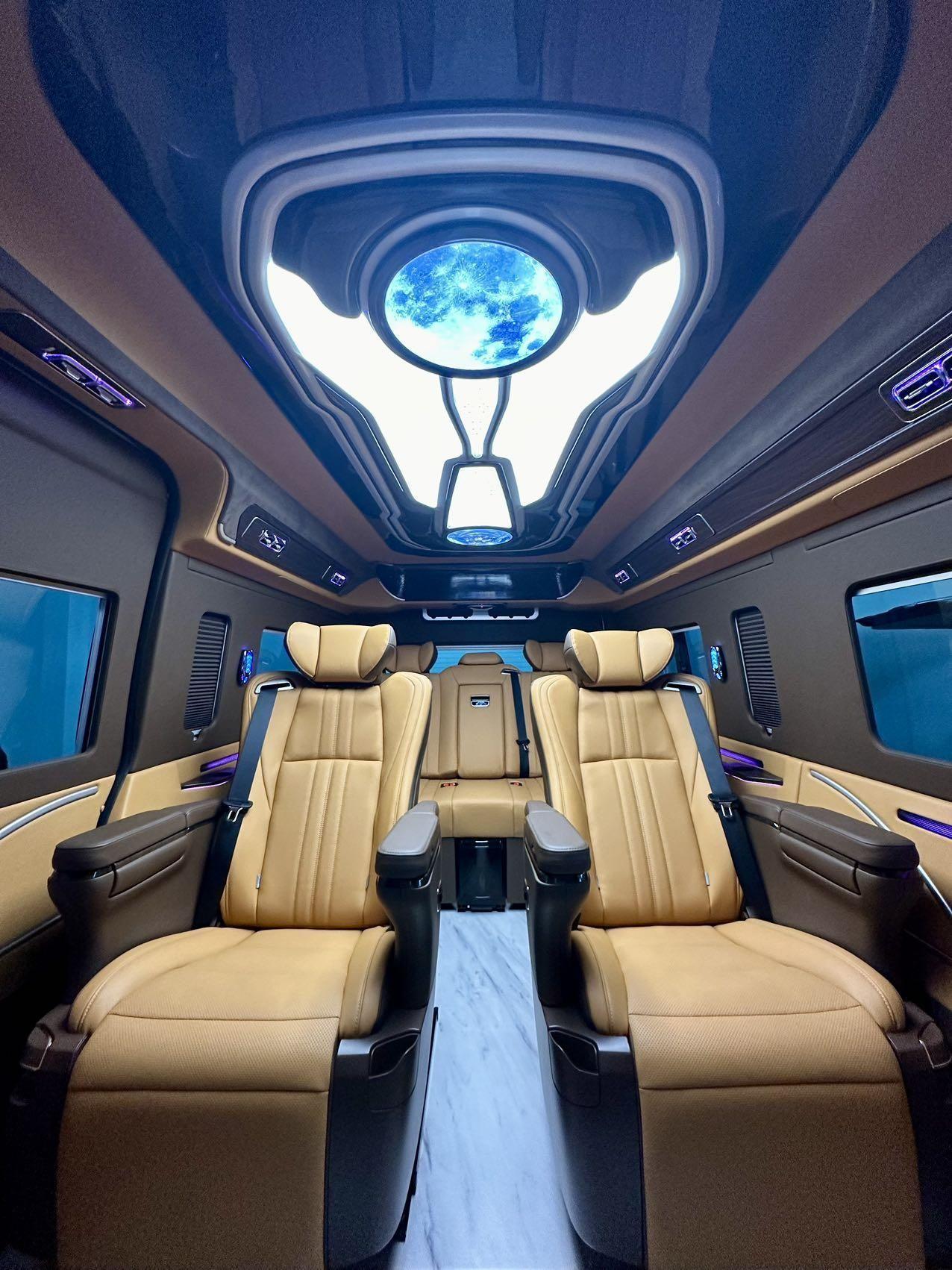 驾驶舱内,豪华配置一应俱全,如Nappa皮质包覆的方向盘、9寸大屏导航、桃木方向盘及多向电动调节座椅等,让驾驶者在享受驾驶乐趣的同时,也能感受到科技带来的便捷与舒适。此外,车内还装有专用麂皮绒遮阳帘,确保隐私与安静的乘坐环境。为了进一步提升乘车体验,该车还特别增加了豪华编织纹地板和定制顶灯,顶灯色彩绚丽,多种颜色可切换,为乘客带来不一样的视觉享受。