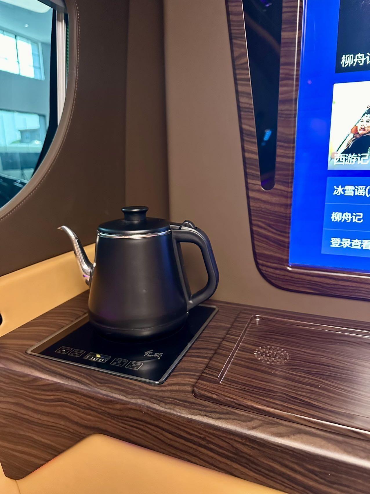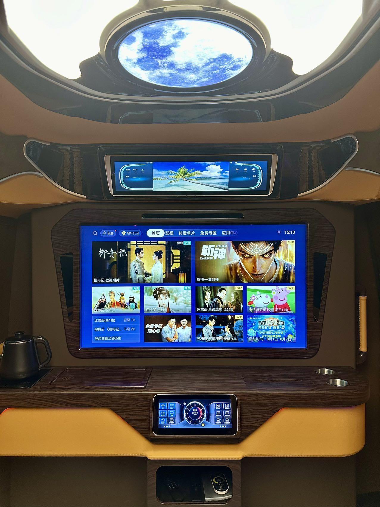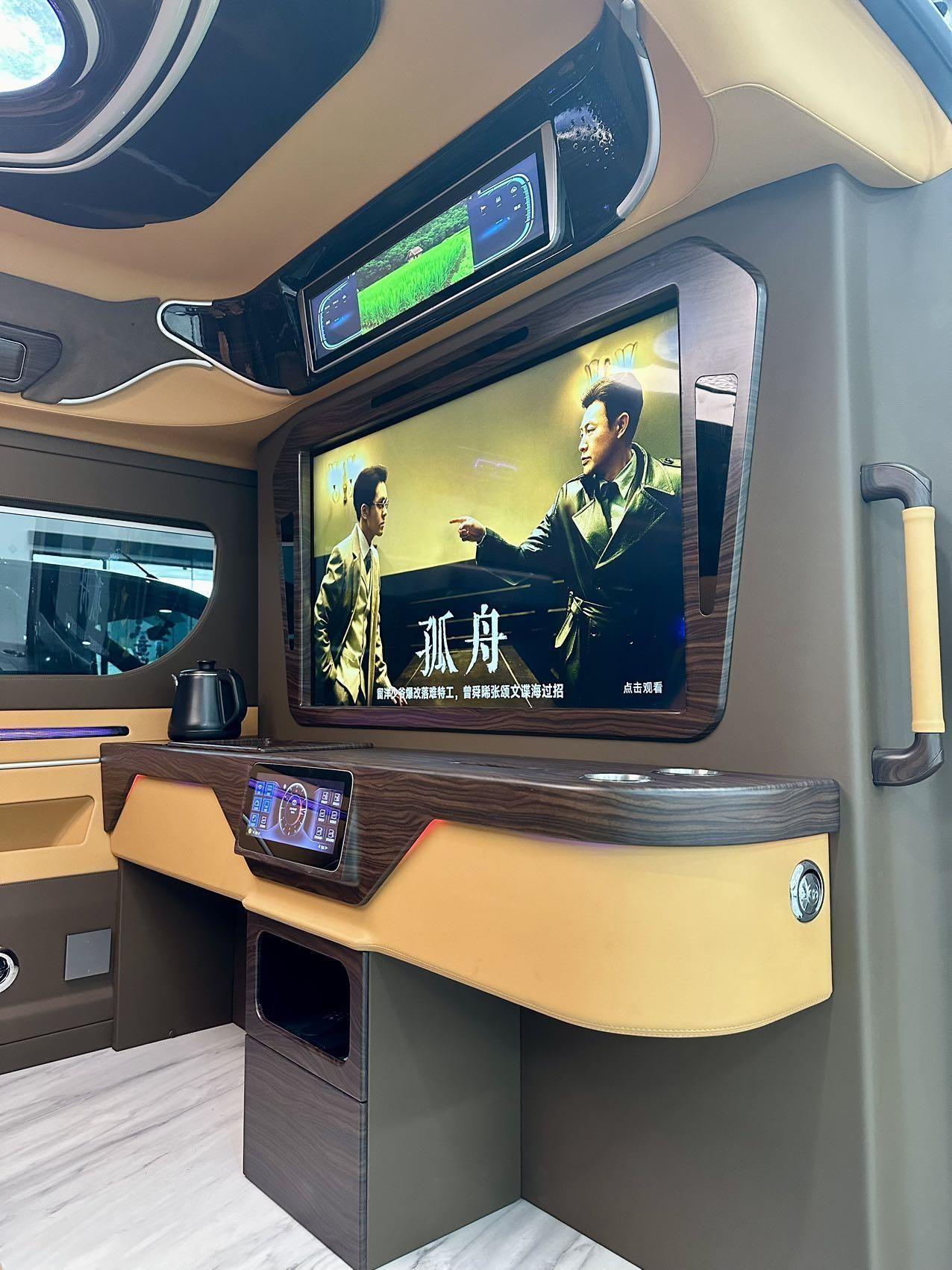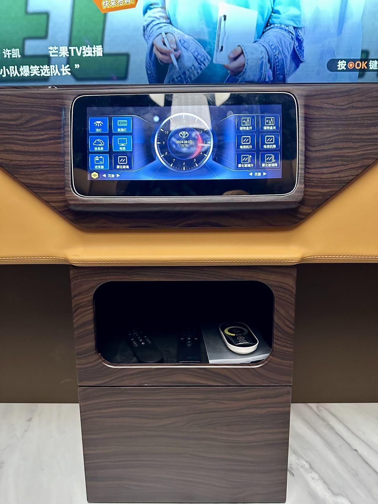 步进车内,豪华的感受扑面而来。丰田海狮七座商务车内部采用了高品质皮革和木纹饰板进行装饰,营造出一种奢华而舒适的氛围。座椅布局方面,该车提供了7座设计,正副驾驶座位背后配备了折叠桌板,方便乘客在旅途中进行办公或阅读。乘客舱内,两个航空座椅和一个沙发床的组合更是让人眼前一亮。航空座椅功能齐全,具备通风、按摩、加热和全方位移动旋转等功能,能够满足不同乘客的乘坐需求。沙发床则支持180度平躺,为乘客提供了更加舒适的休息空间。
