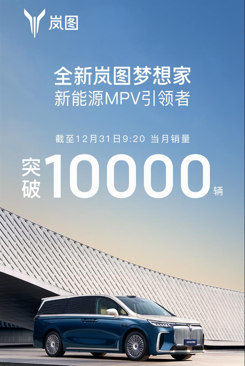 其中,全新岚图梦想家继蝉联新能源MPV销量冠军之后,更是凭借领先一代的产品力,冲击单月销量破万,成为MPV市场中的绝对爆款。