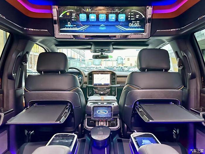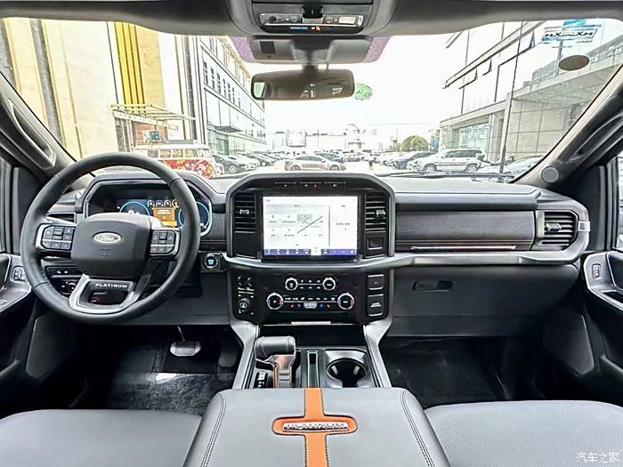 前脸部分,巨大的进气格栅占据了大部分面积,蜂窝式的设计搭配醒目的福特大标,尽显豪放与大气。犀利的大灯组与进气格栅相连,采用氙气光源并配备自适应远近光功能,不仅照明效果出色,还进一步提升了前脸的整体辨识度。引擎盖上隆起的线条,仿佛是肌肉的纹理,彰显着其强大的动力储备 。