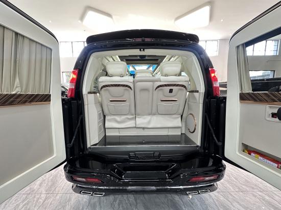 大灯组的设计同样引人注目,内部集成了先进的照明技术,如天使眼 HID 氙气大灯,提供了出色的照明效果,确保夜间行车的安全性。大灯的造型与车身线条相得益彰,犀利的眼神仿佛在诉说着它的不凡性能。此外,车辆的前后保险杠设计厚实稳重,不仅起到了良好的保护作用,还进一步增强了整车的气场。车身侧面,高顶设计在保证车内宽敞空间的同时,也让车辆看起来更加威严庄重。而大尺寸的轮毂采用了精致的造型设计,搭配高性能轮胎,不仅提升了车辆的行驶稳定性,还为外观增添了一份动感与时尚。