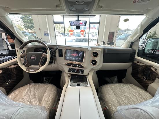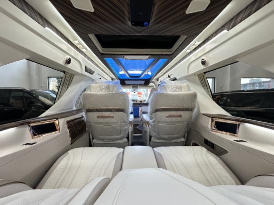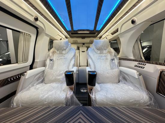 步入车内,2025 款 GMC 商务之星平顶的内饰让人仿佛置身于豪华宫殿之中。车内采用了大量高品质真皮与软性材质进行包裹,从座椅到中控台,再到车门内饰板,触感柔软舒适,营造出一种温馨而豪华的氛围。座椅设计堪称一绝,采用了环抱式航空头等座舱设计。座椅宽大厚实,能够为乘客提供全方位的支撑。并且,座椅具备多向电动调节、加热、通风及按摩等功能,无论是长途旅行还是短途出行,都能为乘客提供极致的乘坐体验。想象一下,在忙碌的商务行程中,开启座椅按摩功能,舒缓身体的疲劳,是多么惬意的享受。