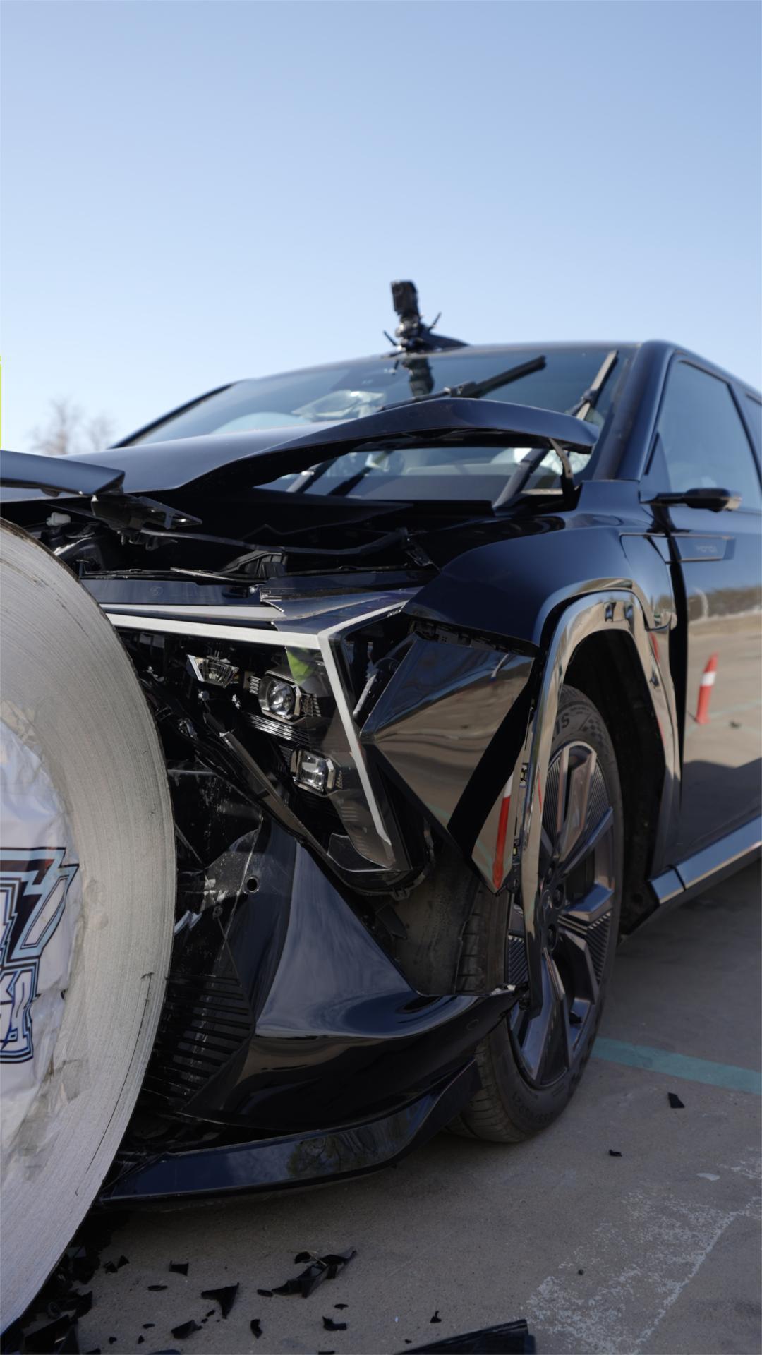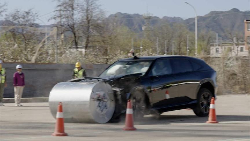 在五次撞击测试中,全车12个安全气囊的触发精度达到毫秒级。车内主副驾气囊、后排气囊、主驾侧前后排气囊、中央扶手处气囊正常爆开,而且它的门把手自动弹出,sos启动。