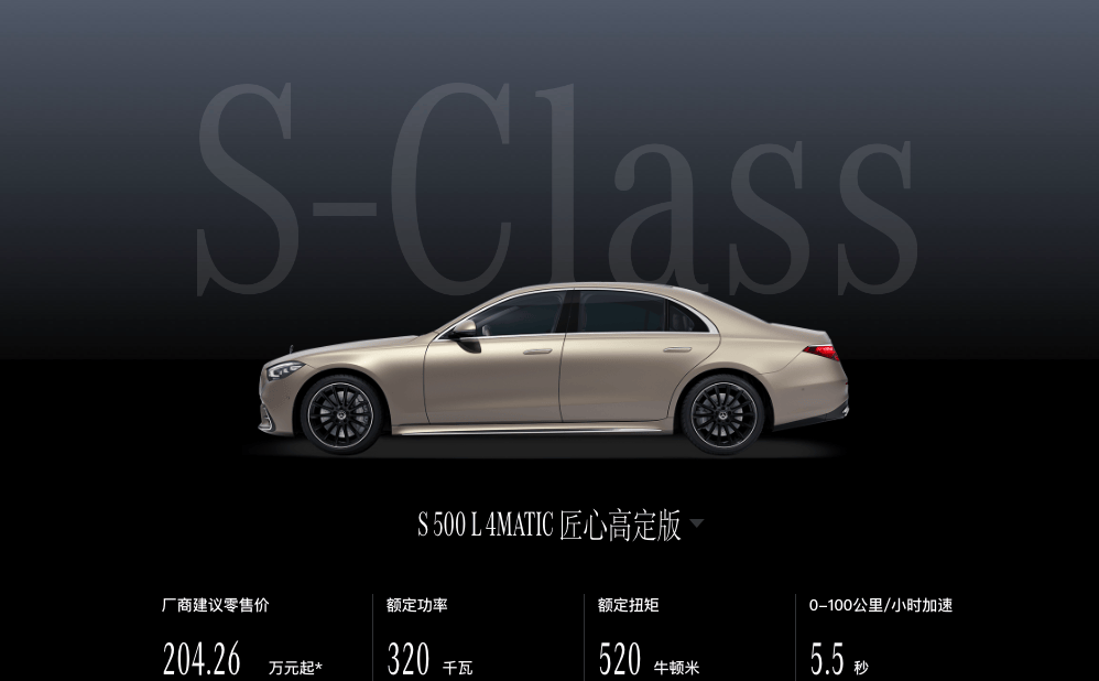 动力方面,2025款奔驰S级可选多种动力版本,其中S 400 L车型搭载2.5T直列六缸发动机与ISG智能电机系统,发动机最大功率230千瓦,最大扭矩450牛·米;S 450 L车型采用高功率2.5T直列六缸发动机配搭ISG智能电机系统,发动机最大功率270千瓦,最大扭矩500牛·米;S 500 L车型搭载3.0T直列六缸发动机与ISG智能电机系统,其中发动机最大功率由330千瓦变更为320千瓦,最大扭矩由560牛·米变更为520牛·米,传动系统均匹配9速自动变速箱。
