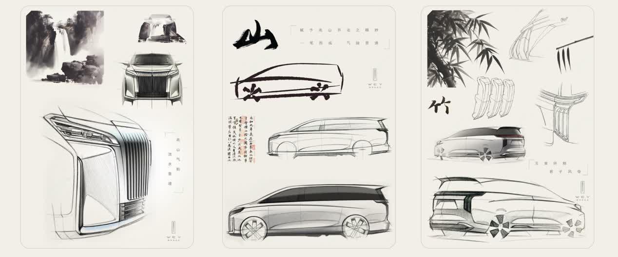 长城汽车将这一东方美学理念融入魏牌全新高山的设计。车头以 “飞瀑流水” 为灵感,塑造磅礴意境;侧面腰线贯通,如气脉流转;尾灯则凝练 “茂林修竹” 的诗意,在刚劲线条与写意留白之间达成平衡,实现了从具象意象到意境感悟的升华,让工业设计承载东方哲学的时空纵深。