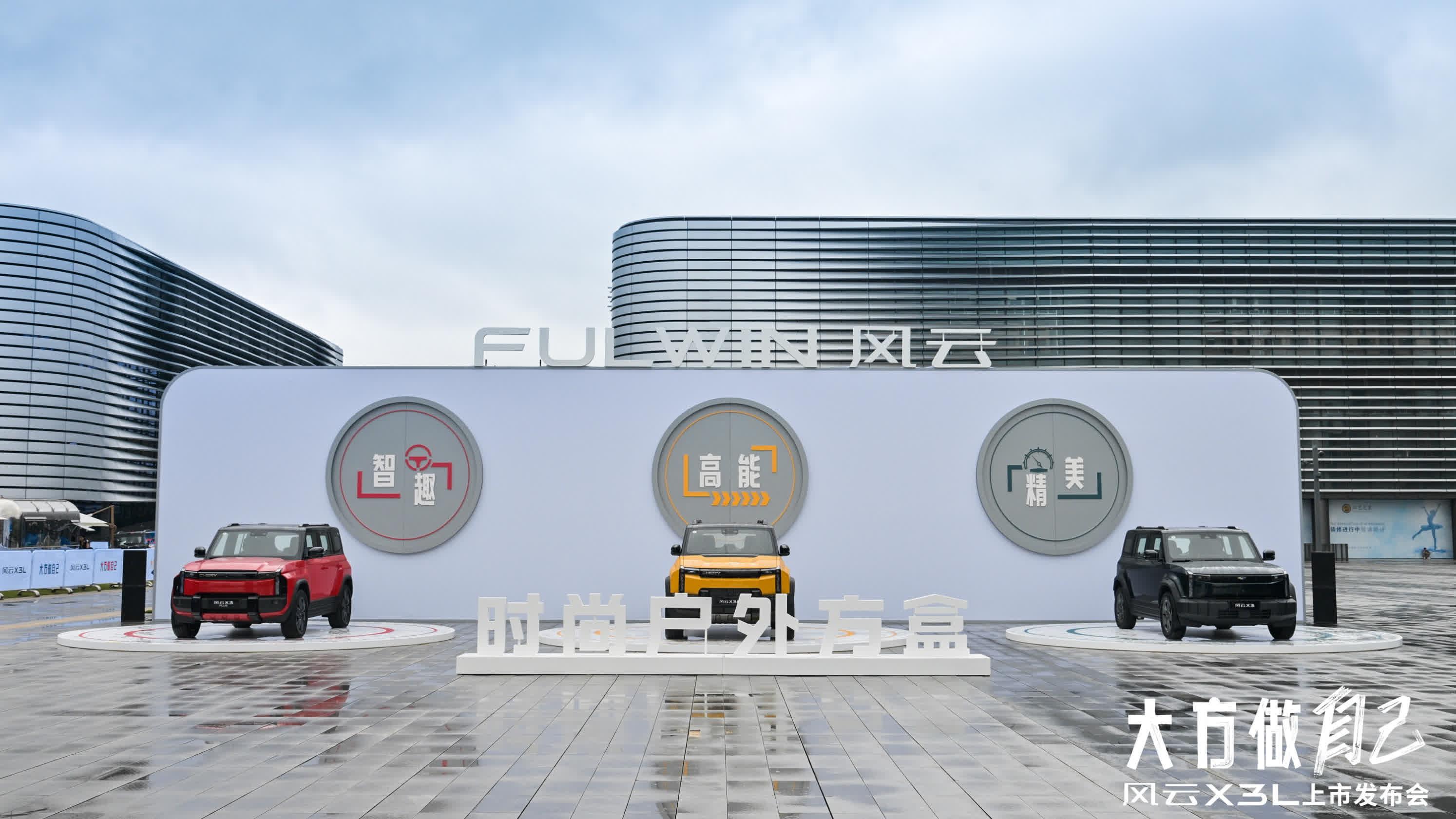 家族车阵区中,风云X3L与纯电双子星风云X3、风云X3PLUS同台展示,多样车身色泽尽显时尚美学;户外休闲区凸显新车1.6吨拖车资质,展现户外生活延伸性。生态潮改区的复古定制版、萤火・探境版等车型,诠释其改装潜力。