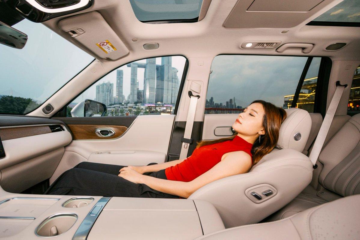 副驾搭载行业首创经络球机械按摩系统,18 个精准按摩点配合环抱式加热,支持零重力模式,超肤感 Nappa 真皮与 11 层复合座椅结构提升舒适感。二排配备独立通风 / 按摩 / 加热功能,五座版靠背可调 137 度、六座版 148 度,同级最大 17.3 英寸莱茵护眼娱乐屏兼顾老人孩子需求,搭配大尺寸圆角小桌板,满足亲子互动。