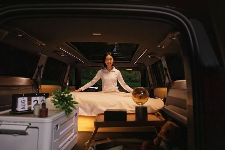车内配备冷暖冰箱,温度调节范围零下6摄氏度到50摄氏度。后备箱顶部预留投影仪支架,在21喇叭音响的配合下,可以形成“移动影院”。