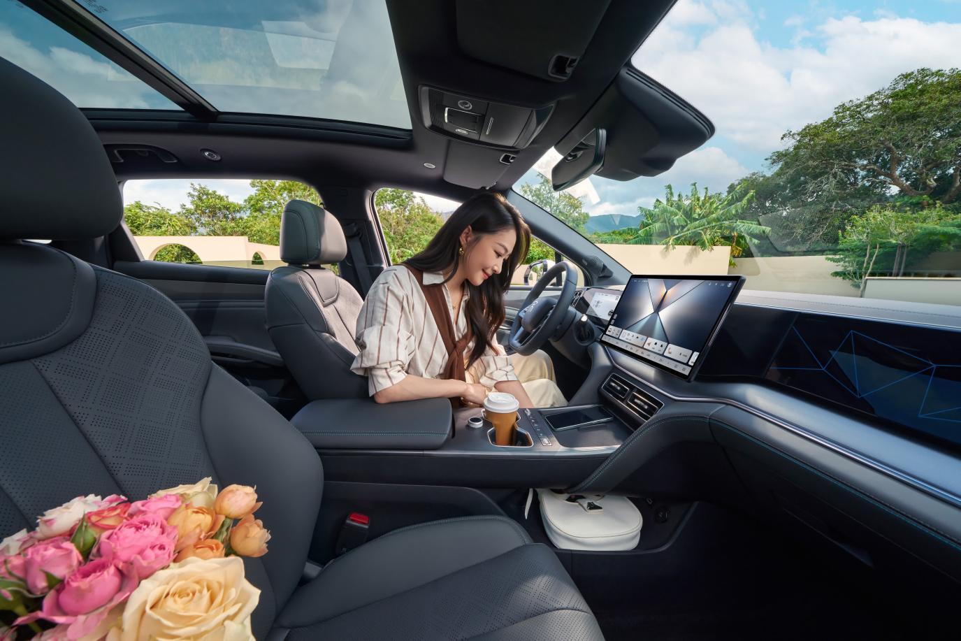 内饰换装集成式豪华电子怀挡,操作便捷安全,200KM卓越型更增设一体式智能冷暖冰箱与前排座椅按摩,10扬声器燕飞利仕音响与31色氛围灯联动,提升驾乘舒适度。DiLink智能网联系统新增手车互联功能,支持华为、小米等品牌手机镜像与导航流转,游戏中心、无麦K歌等功能让车厢成为移动娱乐空间,26英寸W-HUD抬头显示则让驾驶更安全。