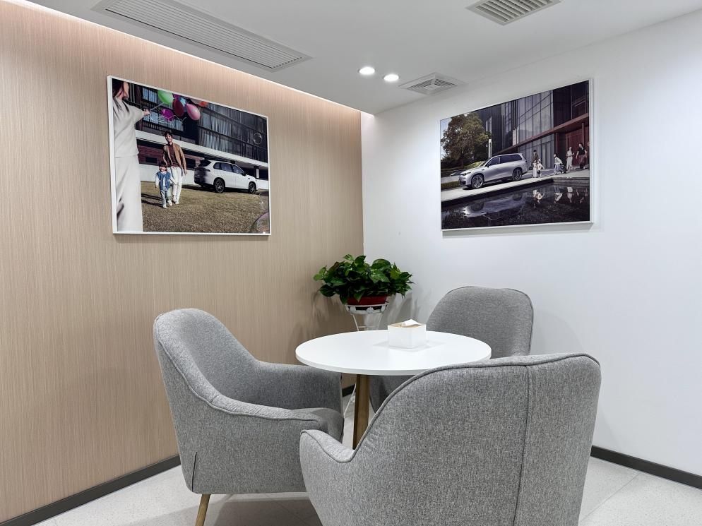 步入店内,通透敞亮的空间设计瞬间颠覆传统4S店的压抑感。近千平米的展厅采用“全景玻璃幕墙+无主灯分层照明”设计,白天自然光洒满全场,每一款展车的车身线条、车漆质感都清晰可见;夜晚暖白光与科技蓝氛围灯交织,搭配简约大气的展台布局,让看车过程更像一场“智能科技展”。展厅内还专门设置了“用户休息区”,家长看车时孩子可在安全区域玩耍,贴心细节尽显对用户的关怀。